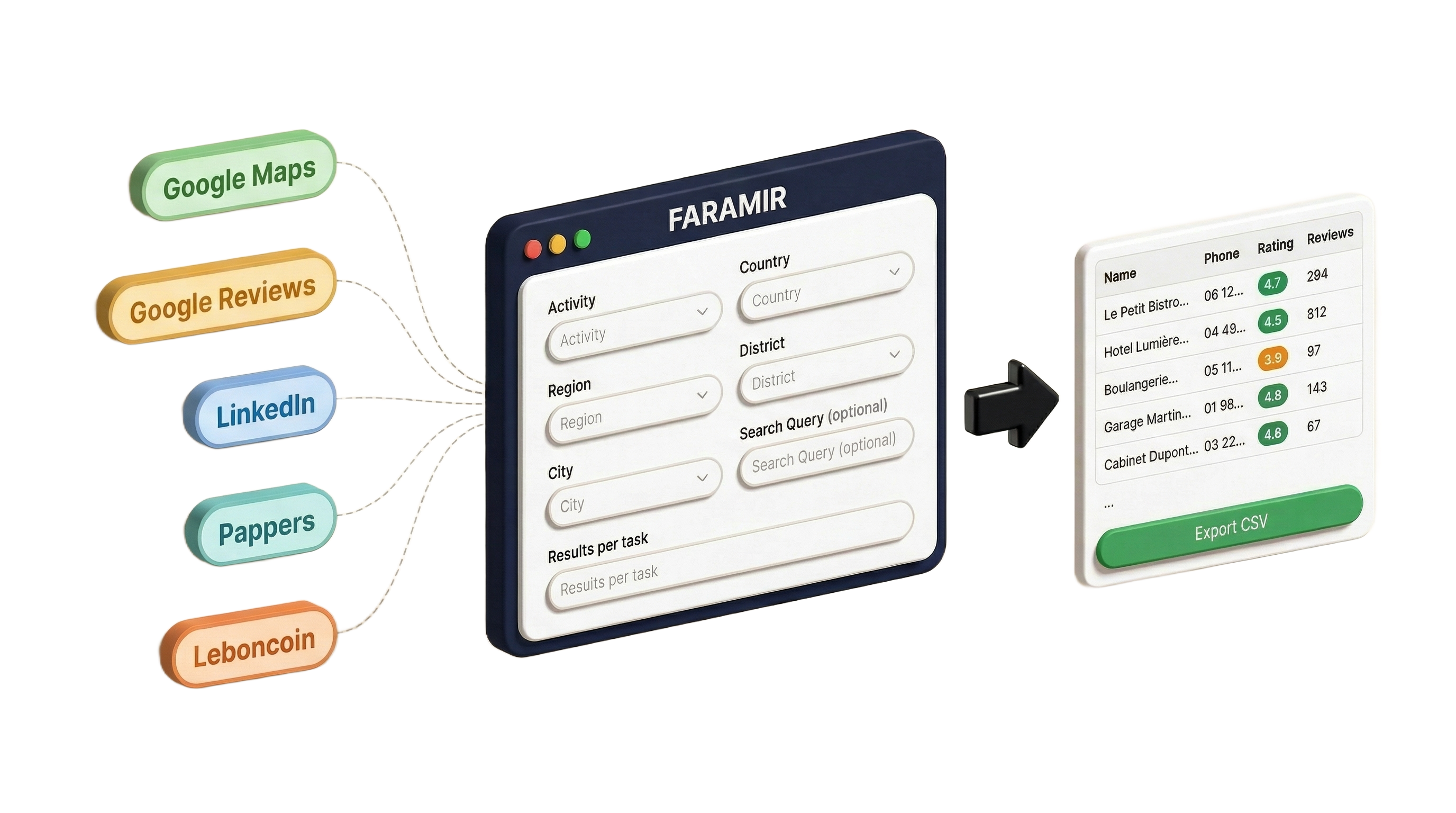Scraper Google MapsScraper Google ReviewsScraper AirbnbScraper LeboncoinScraper SeLogerScraper Pages JaunesScraper Pappers© 2026 Faramir. All rights reserved.